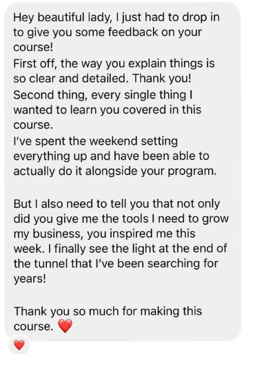 And the beauty about the whole thing? You'll get an entire Facebook community to reach out to with any questions you have as you go along. This group of women is seriously amazing. We share wins, struggles and you'll get to ask me questions directly to continue the learning way past the last video tutorial.