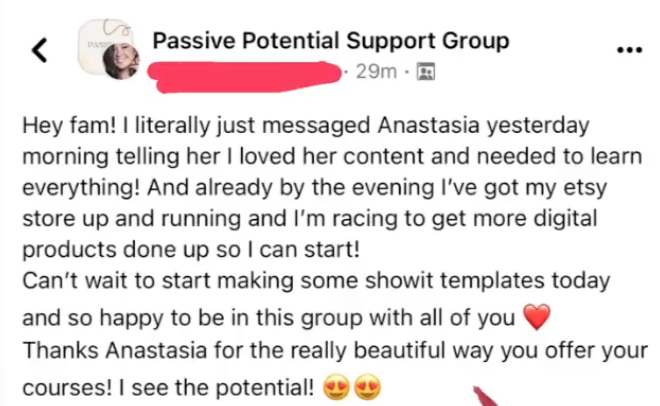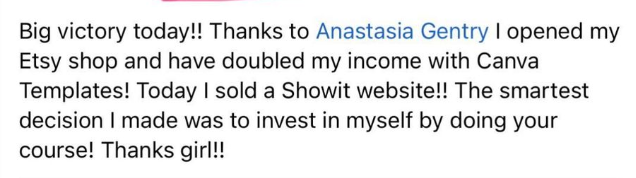 “Anastasia, honestly, is just so helpful. She is there to serve you in the best possible way. She'll be there to help you and your business grow"